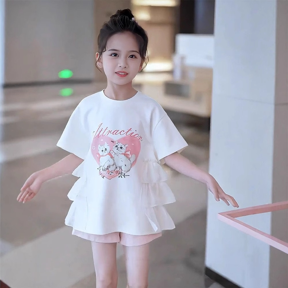 女の子半袖tシャツスカート夏2025新型ファッション子供ファッションスカート夏服女の子半袖上着洋風