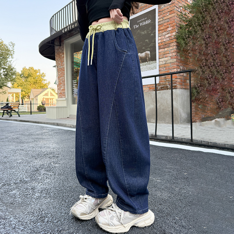 女の子のズボン2025の新型春秋服の子供の洋風の曲がった刀のジーパンの女の子の百合のゆるいハーレムのズボン