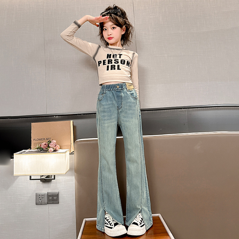 女の子ジーパン春秋モデル9歳の女の子のラッパズボン7春の流行の洋風の8大きい子供の小さいラッパの子供のズボン6