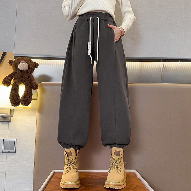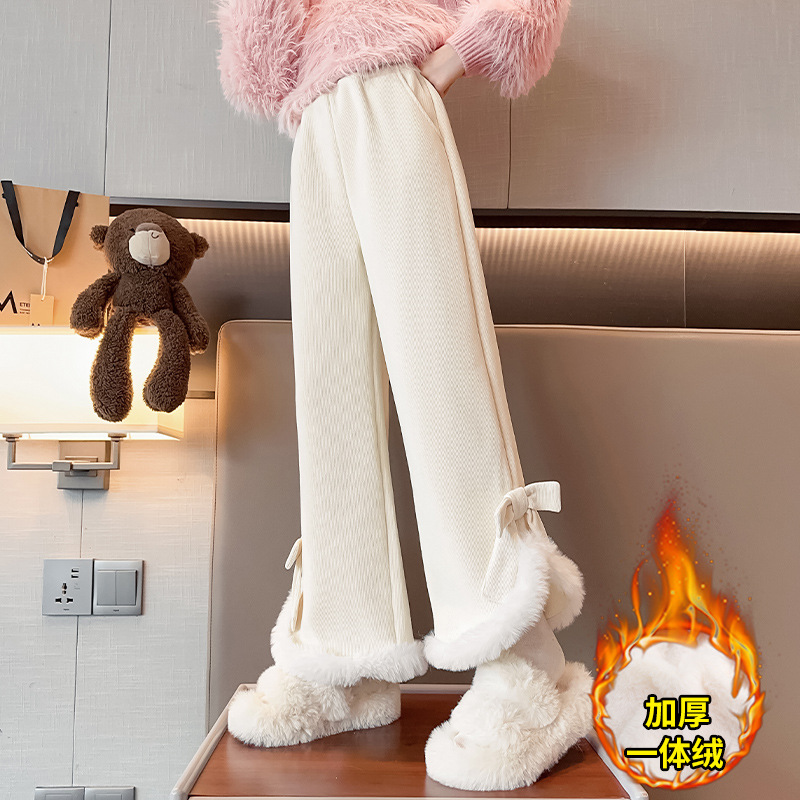 女の子のベルベットのワイドパンツ秋冬2024新サイズの子供の洋気がズボンの女の子のマイクロラッパパンツを厚くする