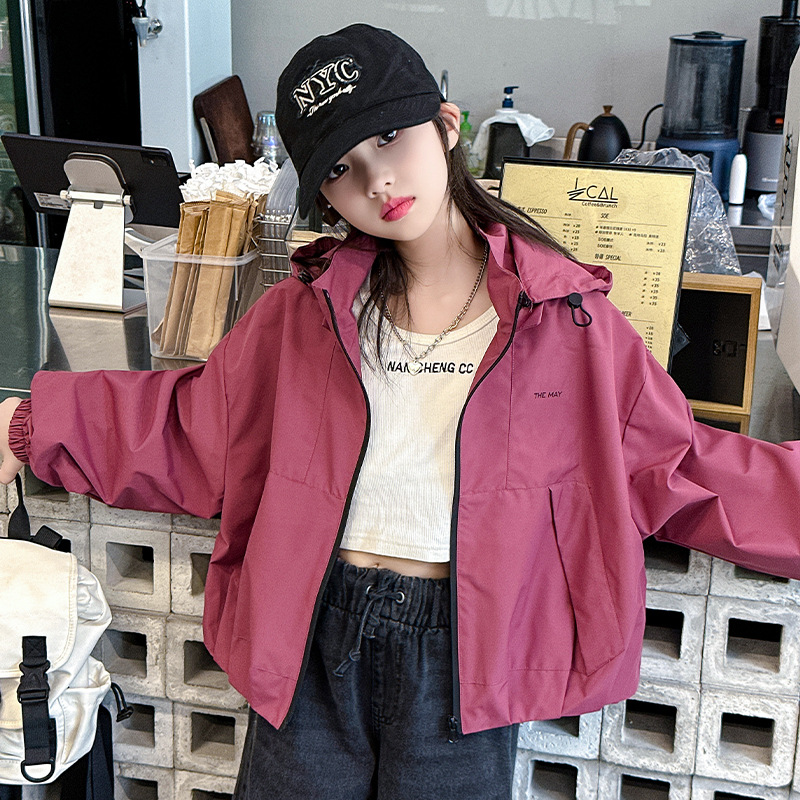 女の子の突撃服の秋の服の2024の新型の洋気の子供のコートの春秋のタイプの小さい女の子の運動は帽子の上着の潮をつないでいます。