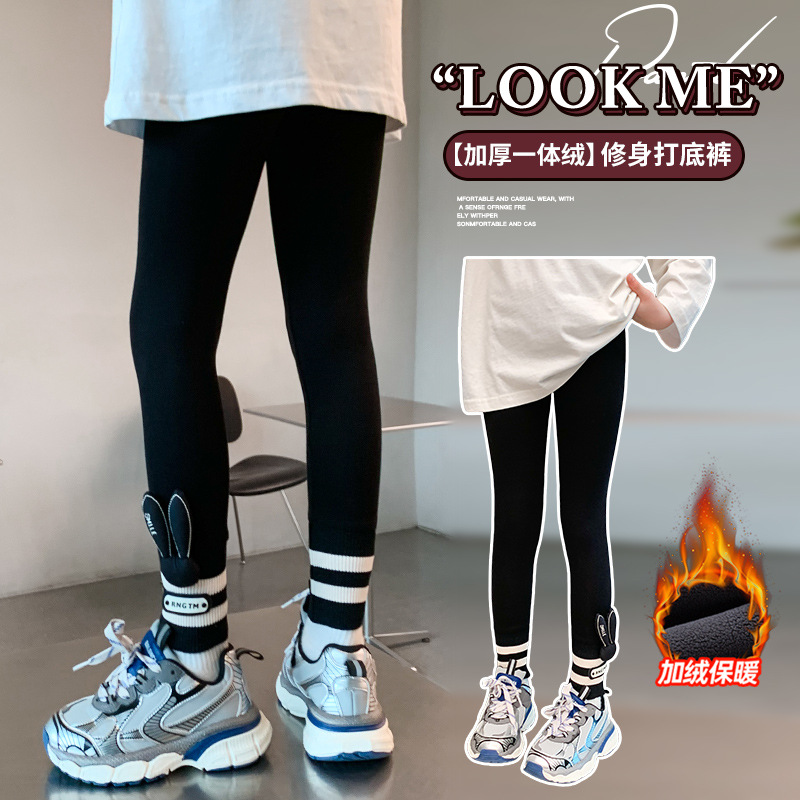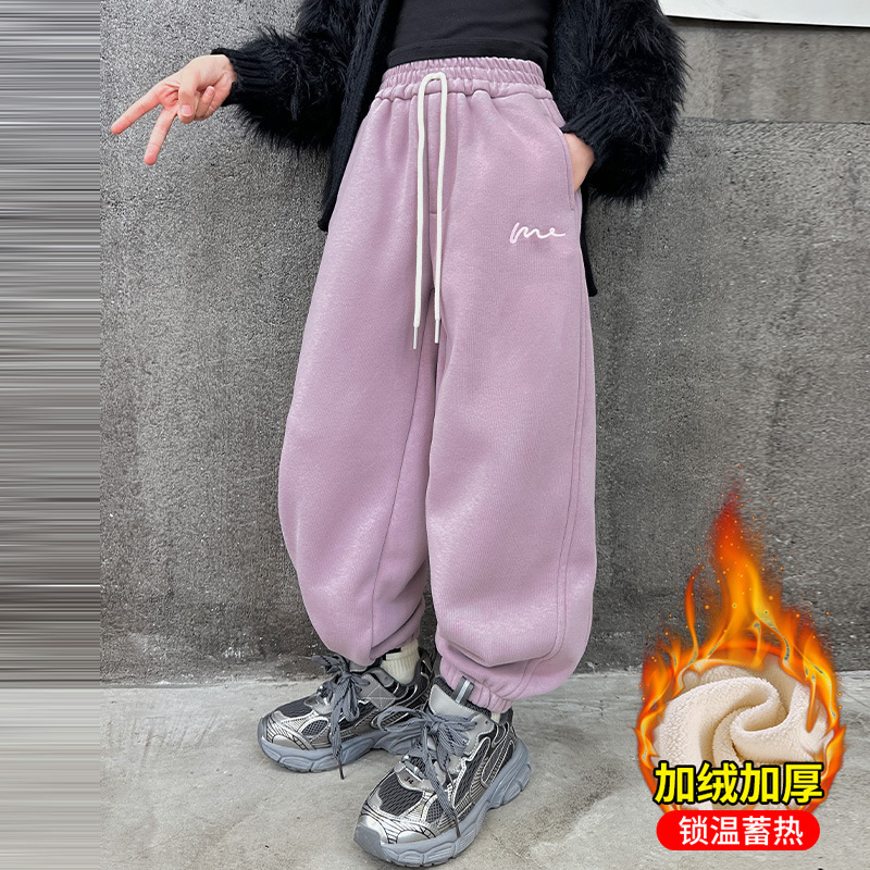 女の子のベルベット工装ズボン秋冬服2024新大童冬一体パイル綿ズボン子供の綿広脚ズボン
