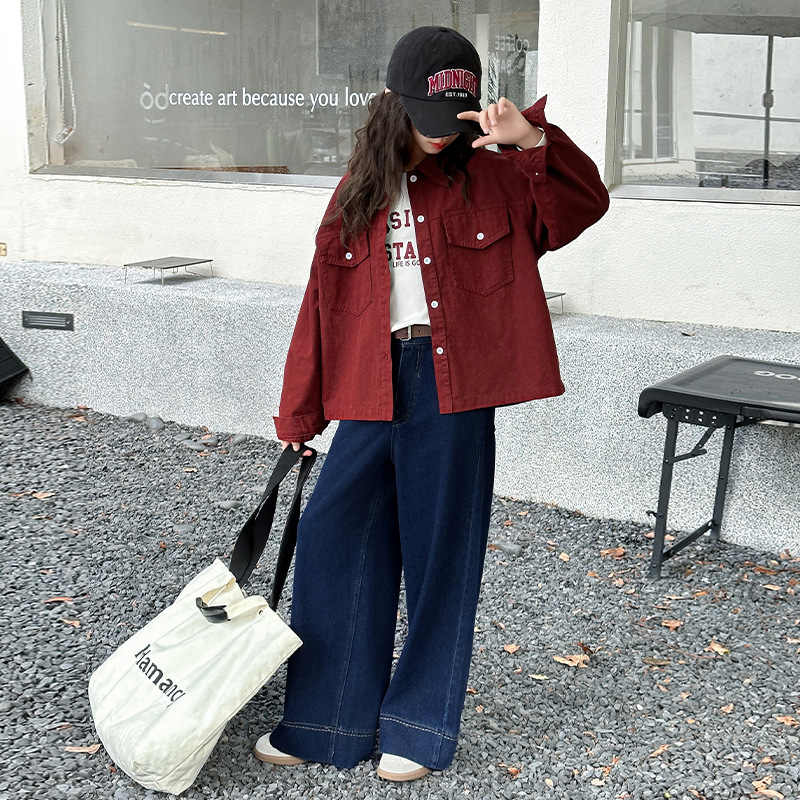女の子コート長袖春秋2024新型子供アングラー赤上着女の子大童秋装流行子供服