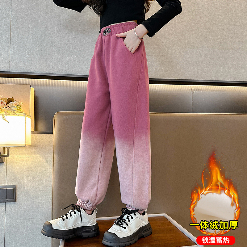 女の子のズボンの秋冬服にベルベットをつけて、街の子供の外にカジュアルなズボンを着ている子供のグラデーションの足のスポーツパンツを厚くします