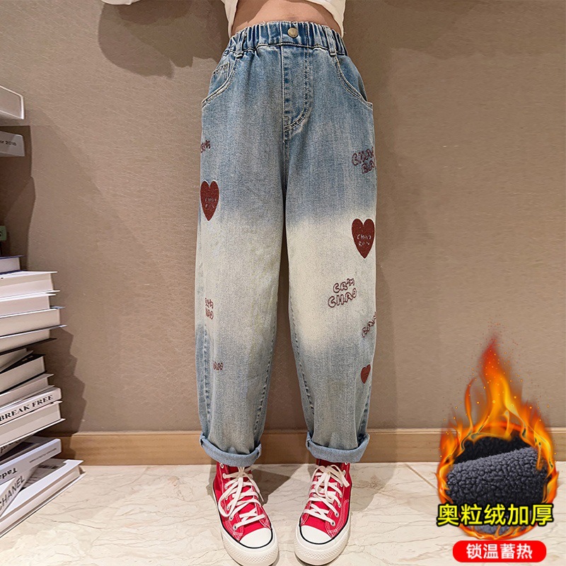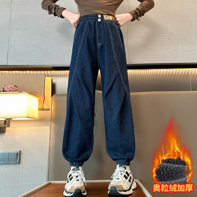 女の子のジーパン秋冬の女の子の大きい子供のレジャーはゆったりしています。