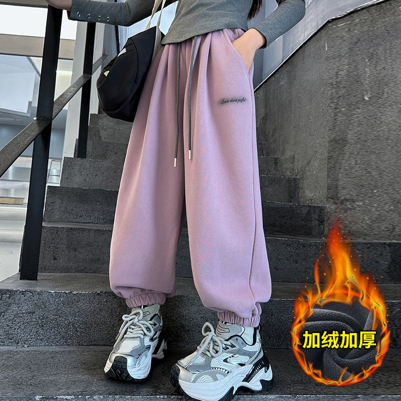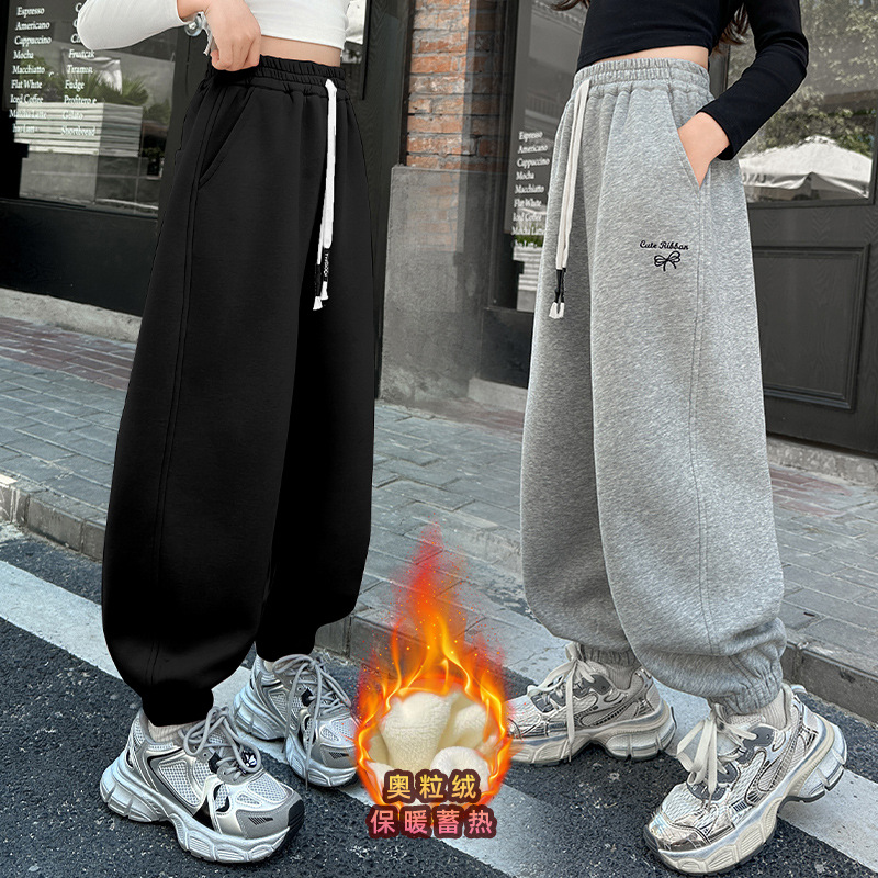 女の子のズボン春秋服2024新型洋気子供加毛カジュアルパンツ女の子洋気大童スポーツパンツ