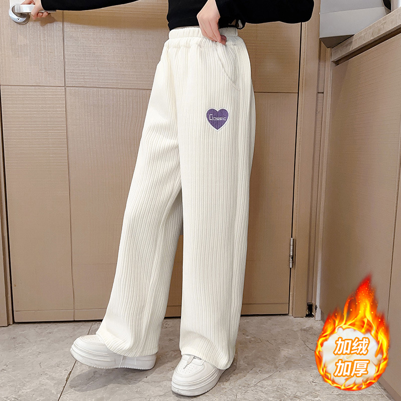 女の子のワイドパンツ春秋冬2024新型子供の中の子供のストレートパンツの狭いバージョンのカジュアルなベルベットのズボンの潮