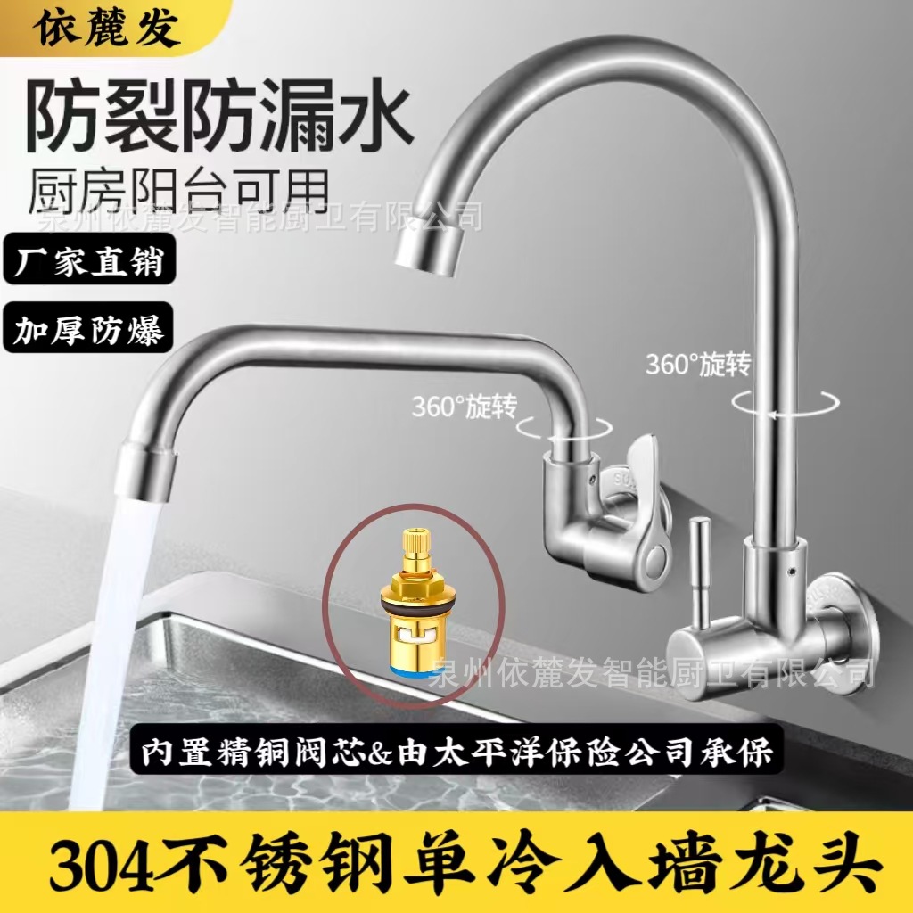 壁に入る304ステンレスキッチン蛇口万向冷水洗浄器ベランダ洗濯池水槽家庭用