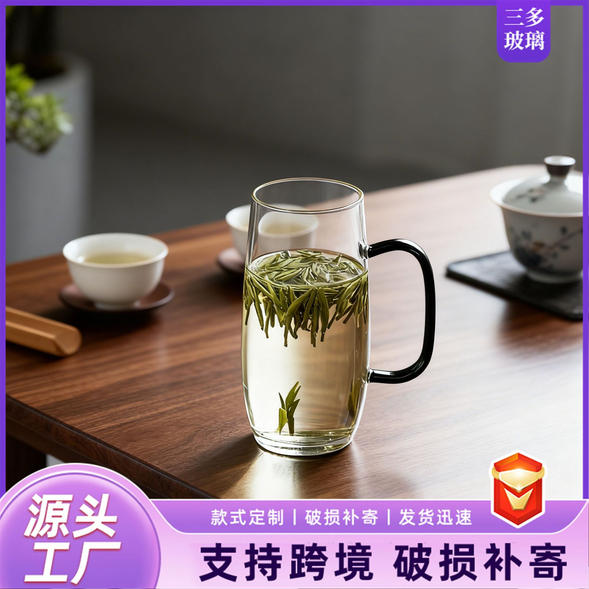 高ホウ素シリコンガラス角形ミルクティーカップカラー取っ手透明ガラス飲料カップ蓋付きストロー単層カップ