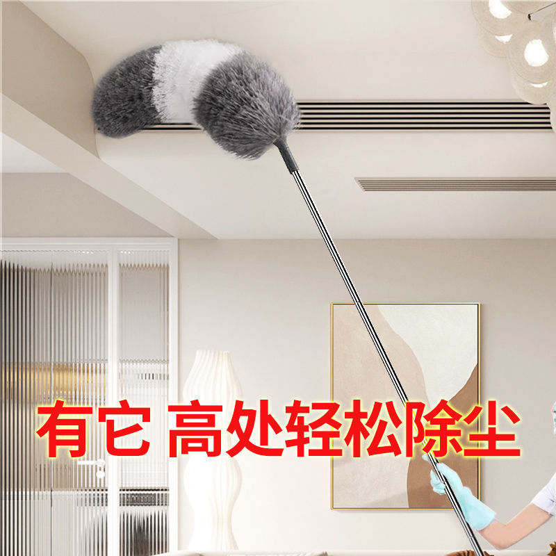 鶏の毛のはたきの静電気はほこりを掃除します。家庭用伸縮棒はほこりの天井の高いところを掃除します。