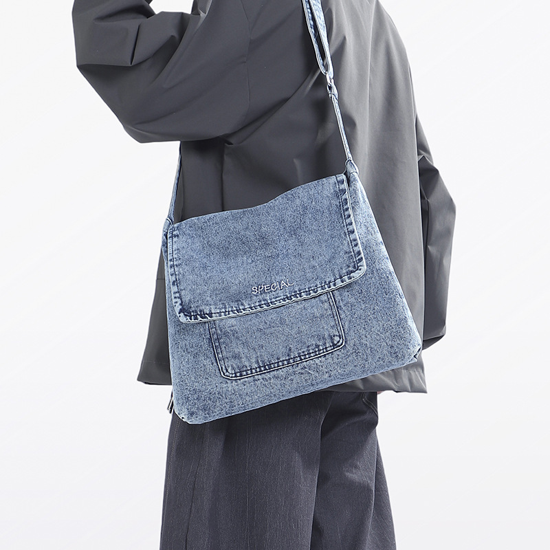 デニムバッグ 2025 トレンディなブランドの新しいメンズクロスボディバッグ文学若者ショルダーカジュアルバッグスポーツスタイル学生バックパック