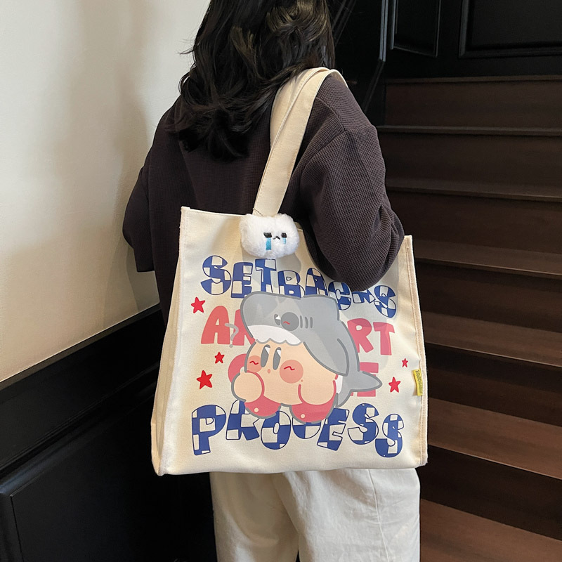 漫画大容量キャンバスバッグ女性のための 2025 新しいポータブル大容量ショルダーバッグ大学生クラスのトートバッグ