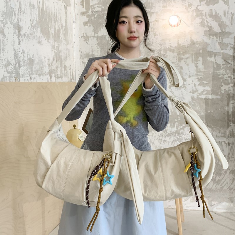 韓系通勤怠惰風餃子バッグ女性ファッション斜めショルダーバッグ大容量ナイロン布軽やかなショルダーバッグ
