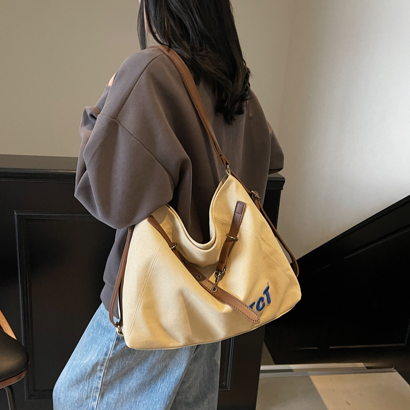 大容量キャンバスバッグ女性のための 2025 夏の新しいカジュアル通勤トートバッグ大学生クラス軽量ショルダーバッグ