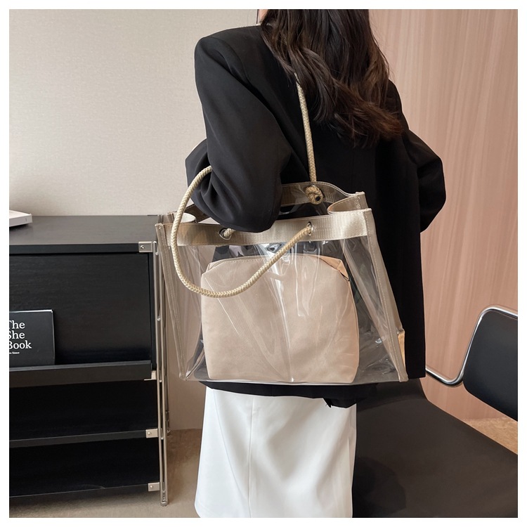 大容量の透明な包みの女性の2024の新型の潮のPVCの子の母のゼリーの包みの高級感の百合の肩の特の包みのバッグ