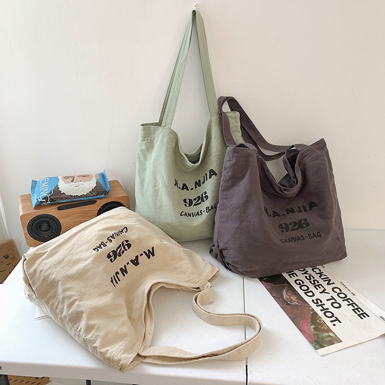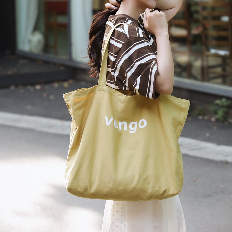 韓国版シンプルな純色キャンバスバッグ女子文芸小清新ショルダーバッグカジュアル大容量オープンショッピングバッグ