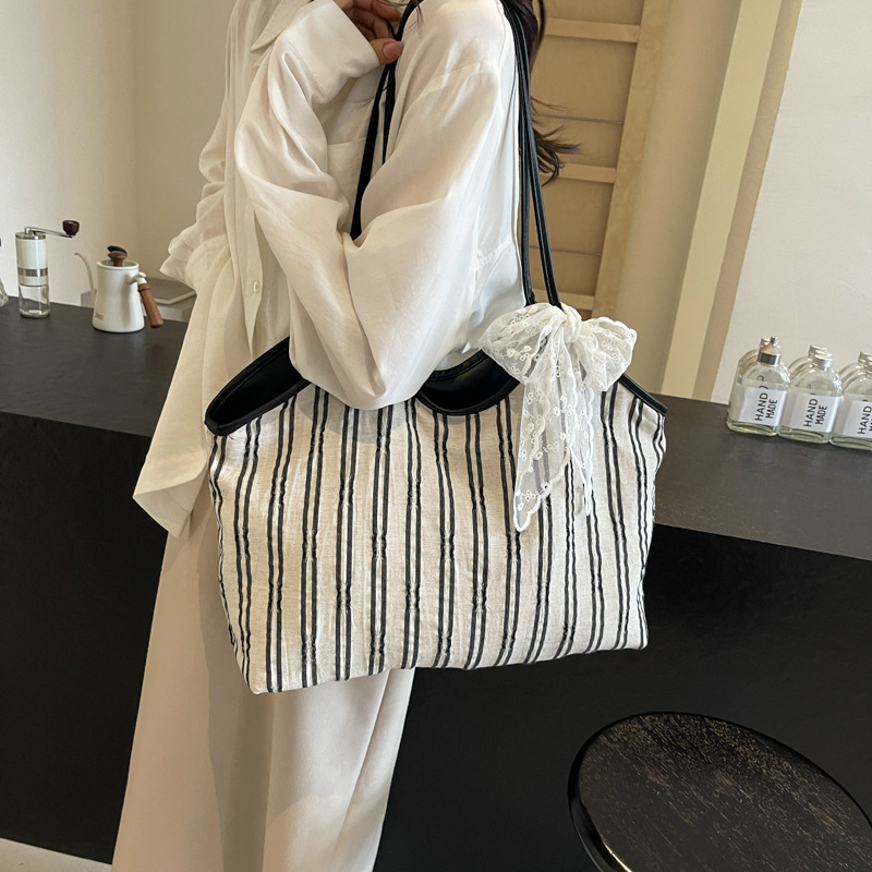 夏ビッグバッグレディース2024新作ストライプカジュアル軽やかワンショルダーバッグ大容量授業通勤トートバッグ