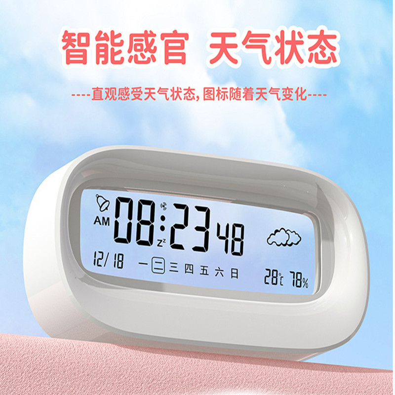 シンプルduog目覚まし時計学生用起こしかわいい漫画スマートデジタルカレンダークリエイティブ透明多機能