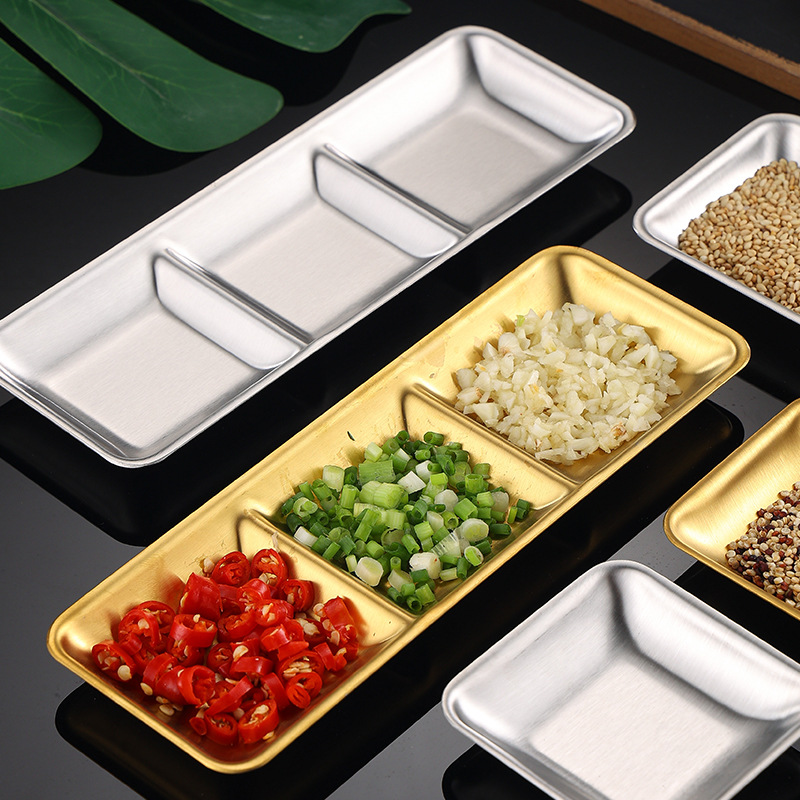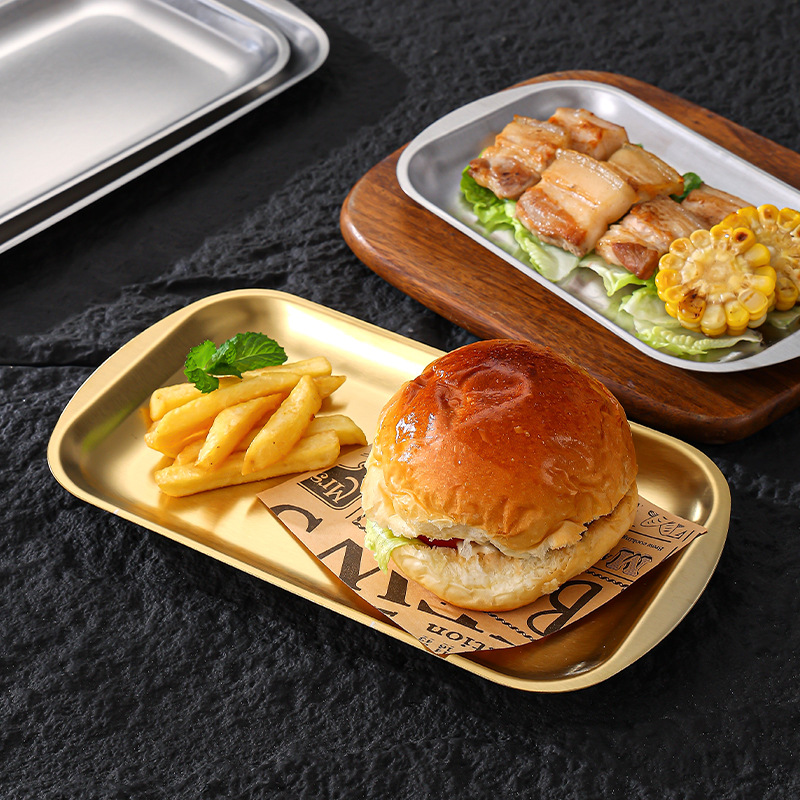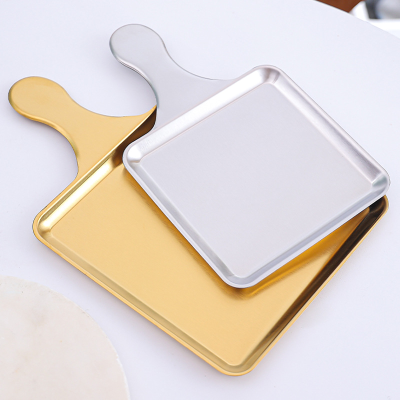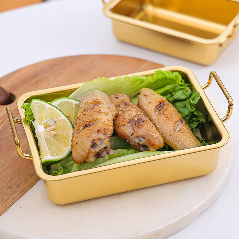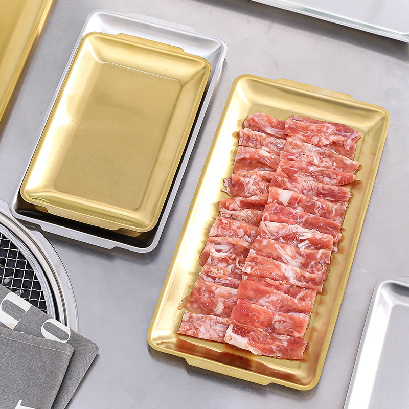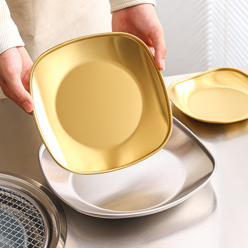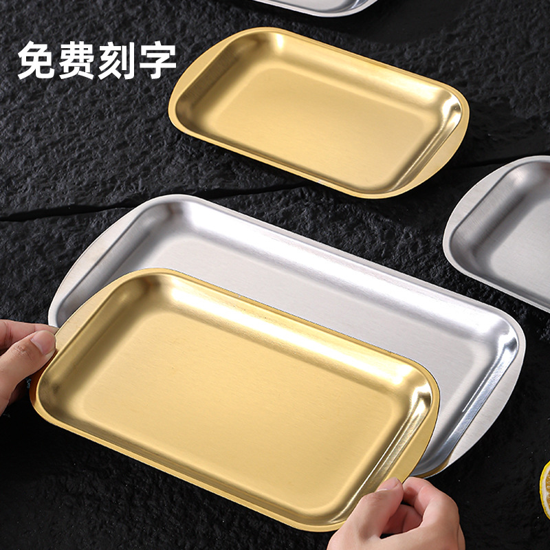 ステンレス鋼韓国スクエアバーベキュープレートデザートフルーツ浅いプレートゴールデンバーベキュープレートコーヒートレイカスタムロゴ