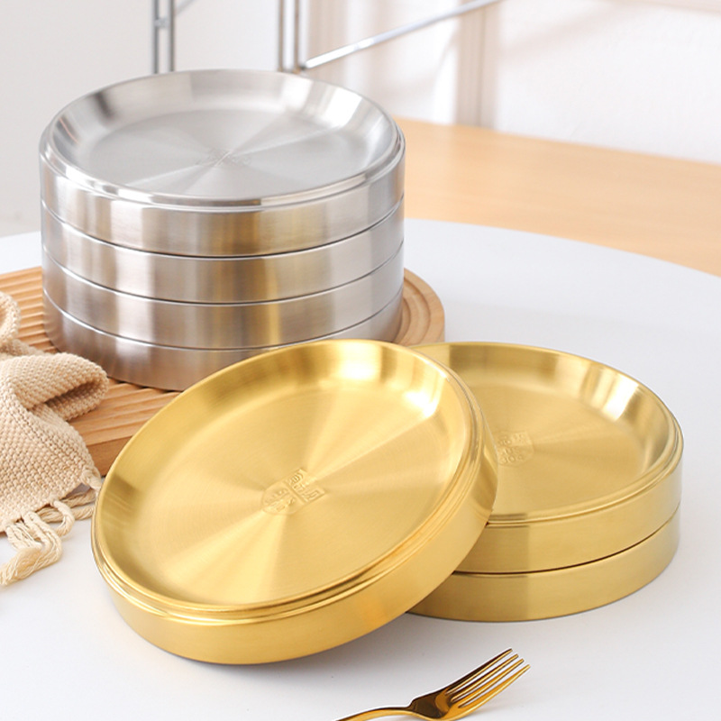 韓国 304 ステンレス鋼プレート積み重ね可能なプレートバーベキュー鍋レストランプレートバーベキュープレートトレイカスタムパターン
