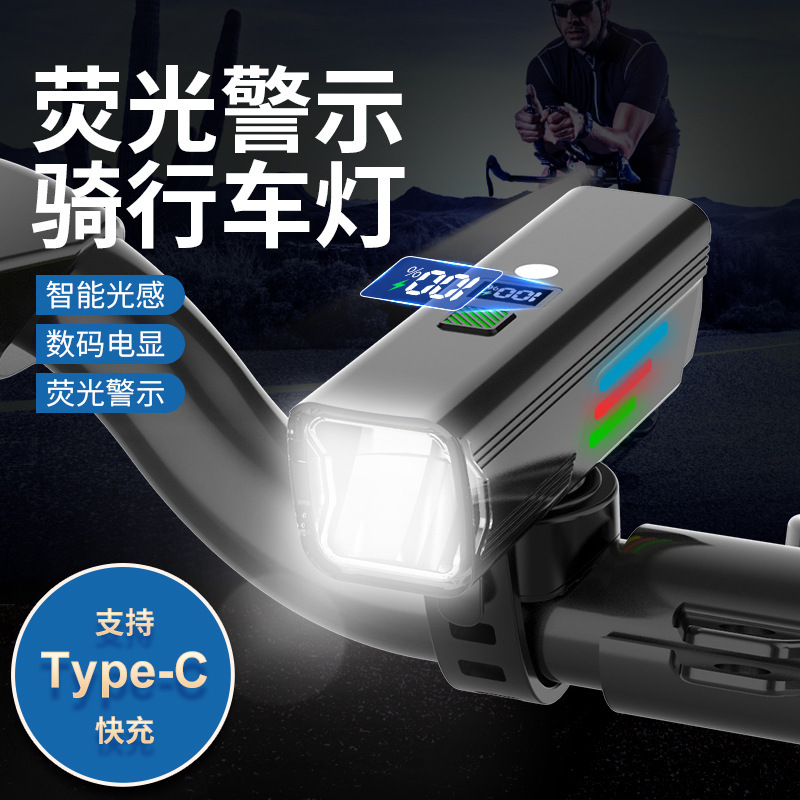 マウンテンバイク照明灯デジタル表示自転車ヘッドライト充電スマート光感度調節ロング航続ナイトライト