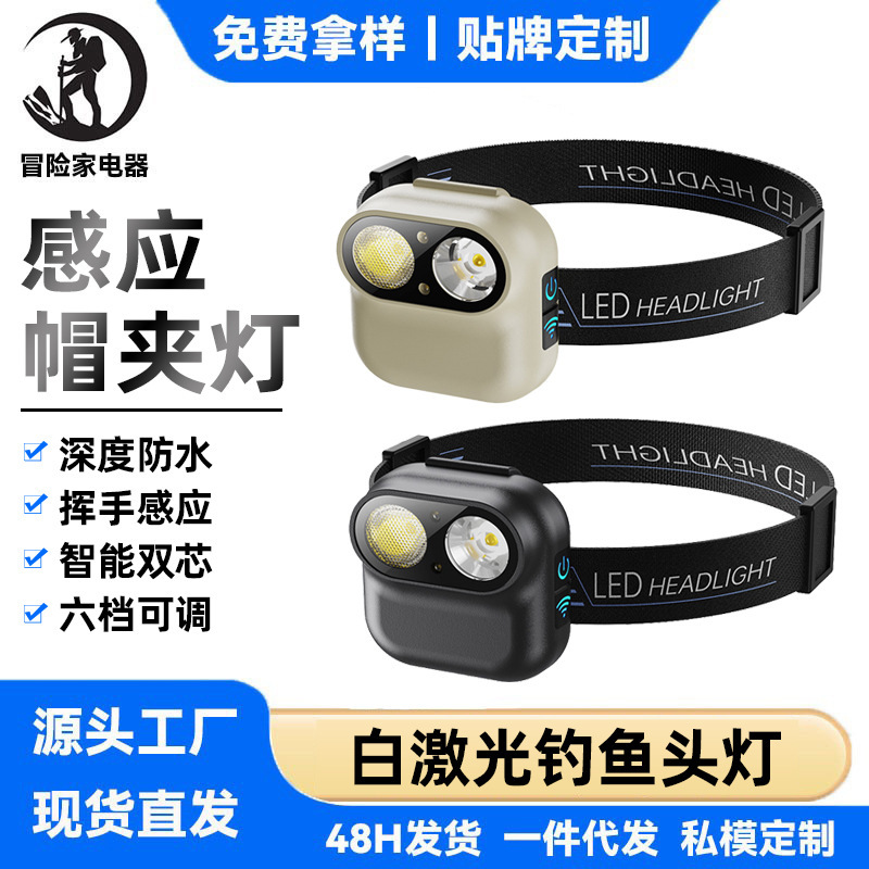 越境新品知能感応ヘッドライト強い光ミニ携帯型クリップランプ充電長い航続ヘッドライト夜釣りライト