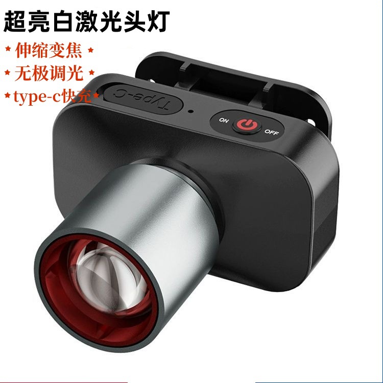 新しい白いレーザーヘッドライト、強力な光、高ルーメンズームヘッドマウントマイナーズランプ、LEDフィッシングヘッドライト、長持ちするリチウム電池
