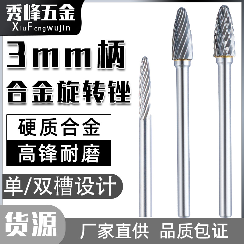 3 ミリメートルハンドル湾曲した丸頭シングルおよびダブルスロット F タイプタングステン鋼研削ヘッドフライスカッター金属研削彫刻超硬回転やすり