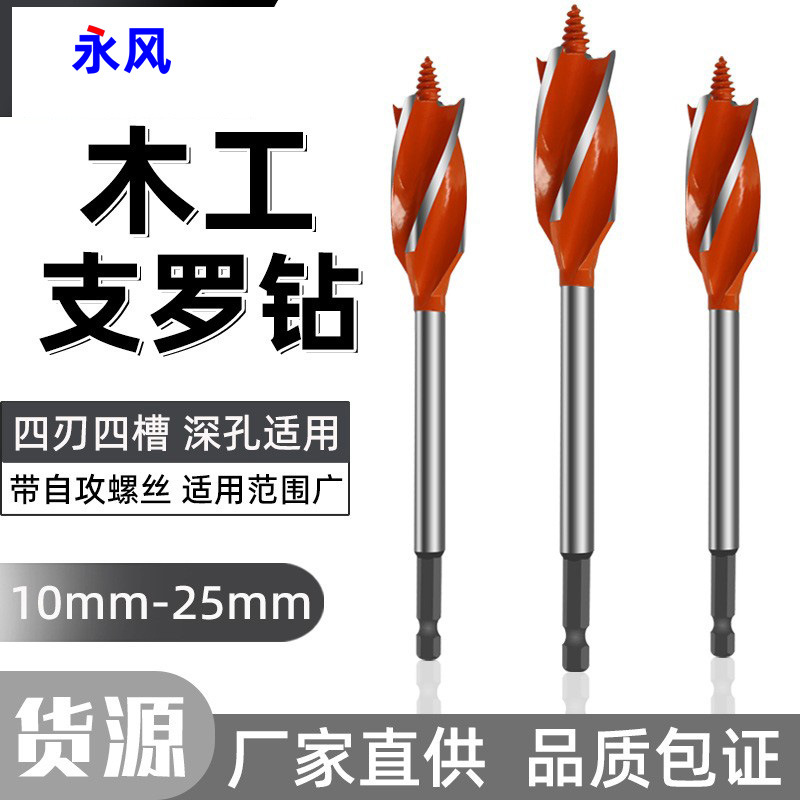 4溝4刃木工ドリル、延長ドアロック穴開け器、深穴拡張ドリルビット10~25mm、メーカー販売