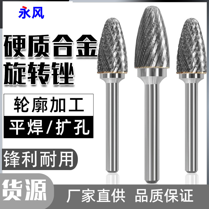 タングステン鋼研削ヘッド、超硬回転ヤスリ、湾曲丸頭フライス、金属研削彫刻、シングルおよびダブル溝パターンFタイプ
