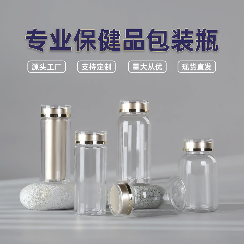 卸売透明プラスチック瓶カプセルヘルスケア製品ボトル錠剤オタネニンジンデンドロビウムアメリカ人参冬虫夏草粉末アクリルボトル