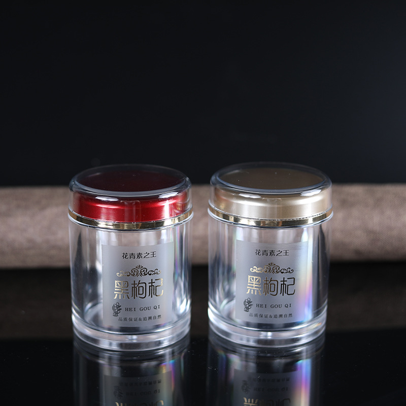 卸売りは透明アクリル缶カプセルに霊芝胞子粉健康食品包装プラスチック密封缶を含んでいる