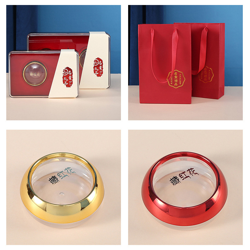 メーカーの卸売りはプレゼントの箱を開けて赤い花のアクリルの包装箱のブリキの石のgokの漢方薬の滋養品のギフトの箱を隠します。