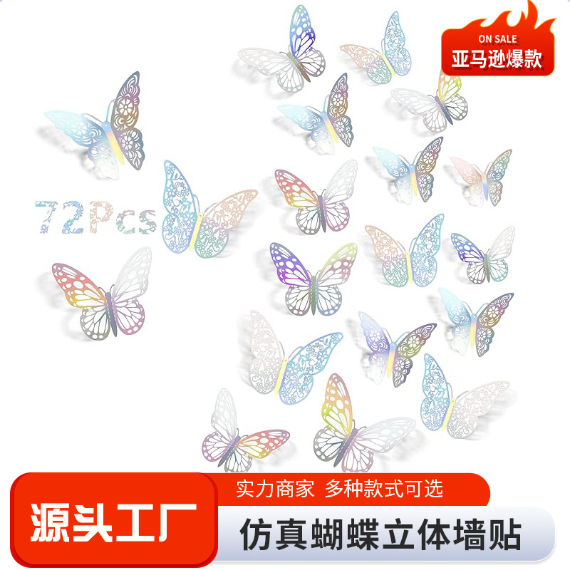 クロスボーダー 3D 中空蝶装飾三次元壁紙二層金属テクスチャ模擬蝶混合壁ステッカー