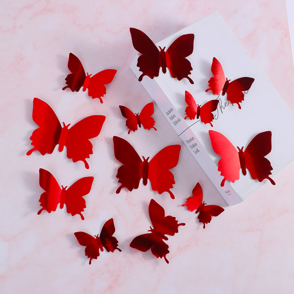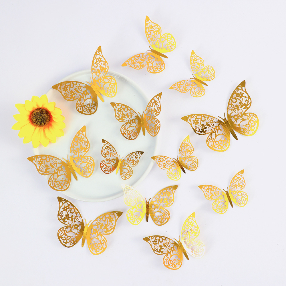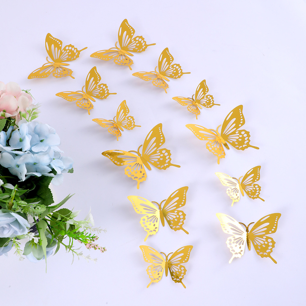 12個の立体透かし彫り蝶壁紙シミュレーション金属質感蝶壁シールパーティー壁面装飾