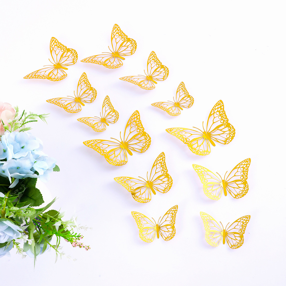 国境を越えた新型12匹の蝶の壁に金属感多色3d立体透かし彫り蝶パーティー用品の壁貼りを貼る