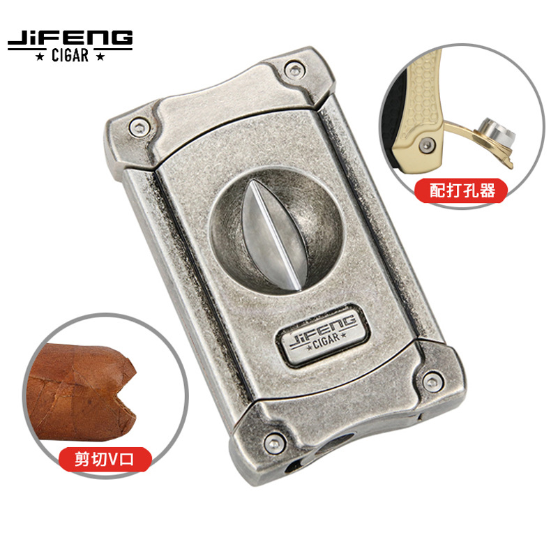 Jifeng季節風シガーカットデスクトップシガーナイフ四切穴v型o型クルップステンレスシガーはさみ