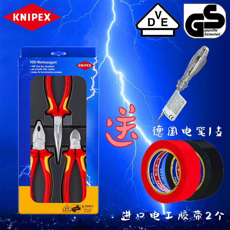 ケニーパイクknipex絶縁電気ペンチ斜口ペンチ/尖口ペンチ/ワイヤーペンチの三点セット多機能