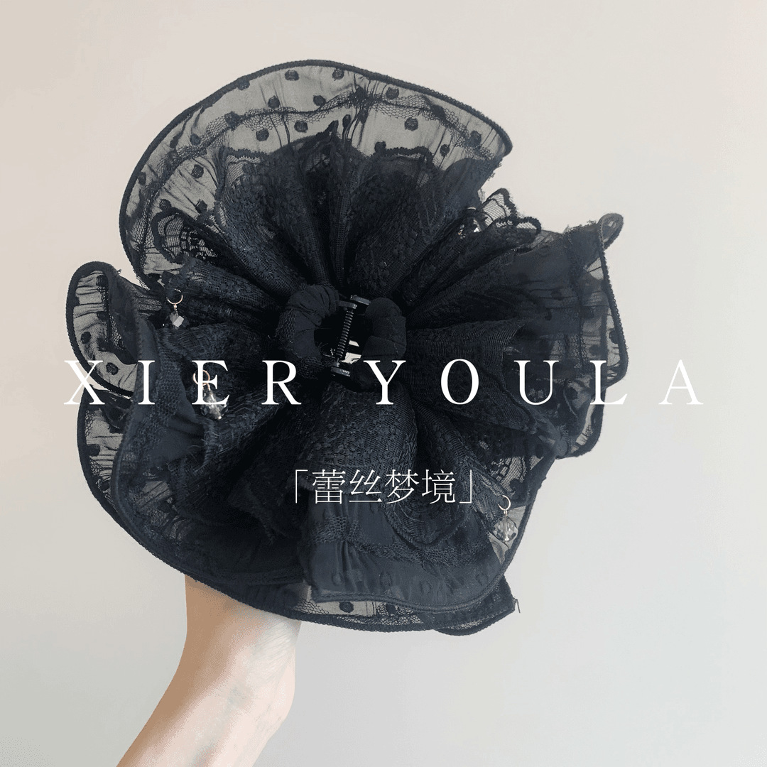 【墨香書韻】フレンチレースの網玉の大腸の髪輪のサテンの優雅なヘボン風の髪飾りの女性