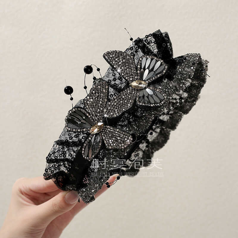 (スパンコール蝶) 軽豪華新商品の広縁カチューシャ滑り止め歯が髪の縫い目を覆っています。