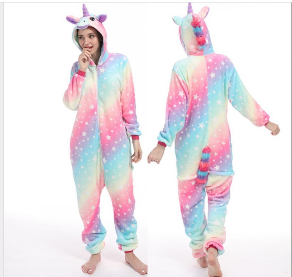 秋冬男女カップルホームウェア魚鱗虹星空天馬漫画動物連体パジャマフランネル