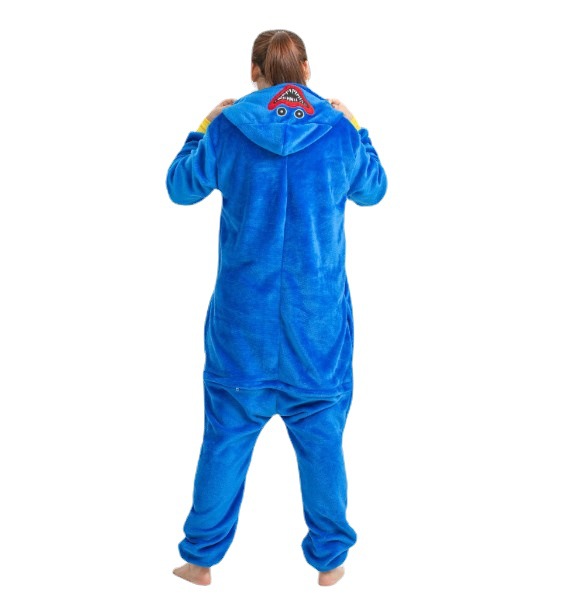 秋冬の外国貿易の速売通の子供の男女の漫画の動物の青いサメの連体のパジャマのフランネルのカップルの部屋の服