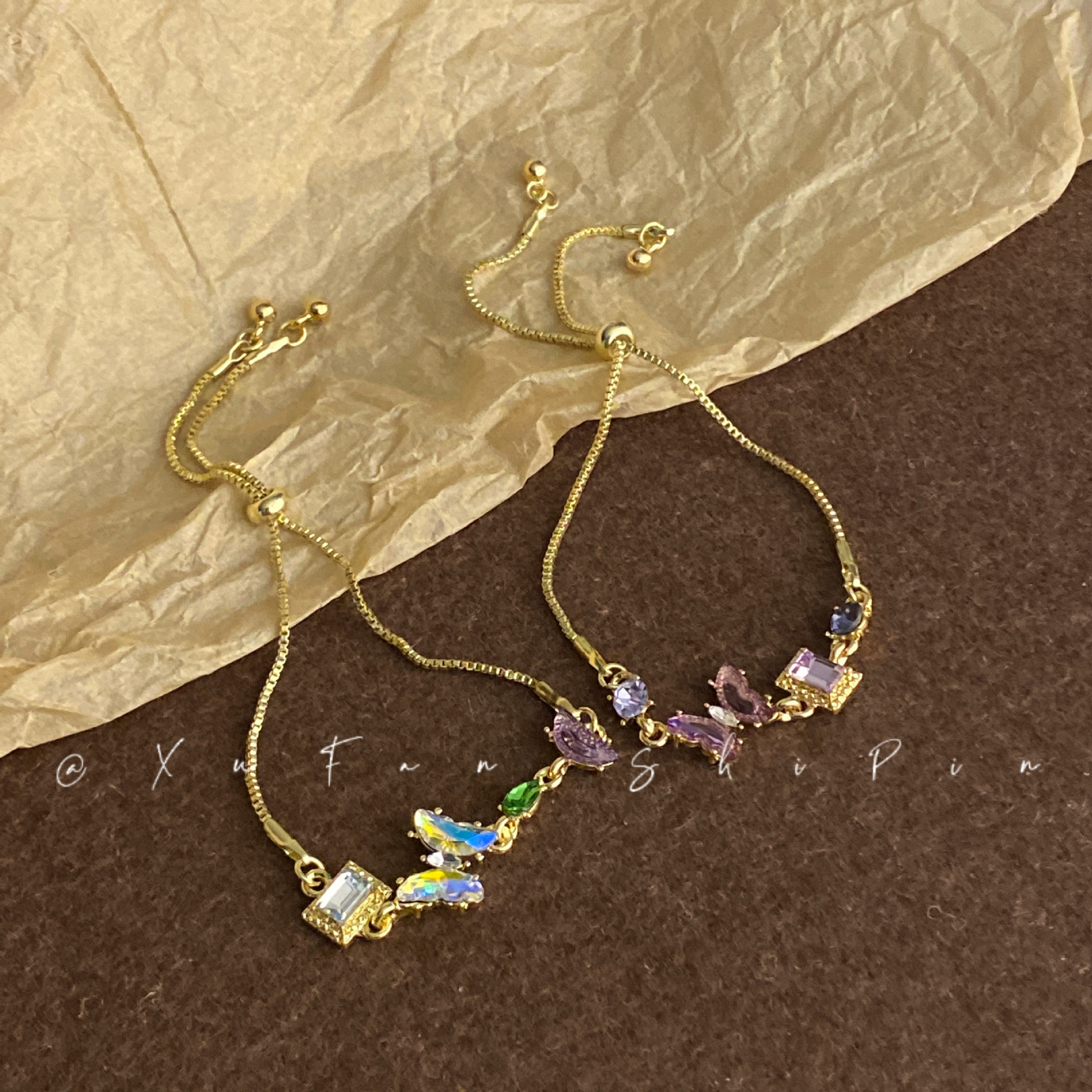 2024新型の軽豪華で甘美な百合超閃紫蝶ジルコンブレスレット女性高級感アクセサリー卸売り