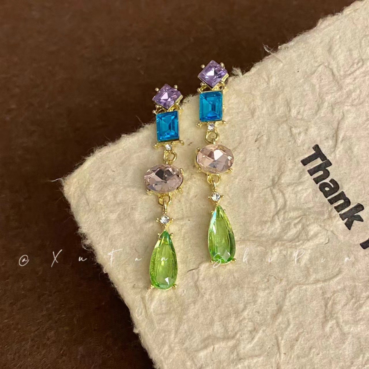 新しい夏の少女のキャンディー色のジルコンのフリンジイヤリングの女性の軽い豪華な高級感の甘いイヤリングのイヤリングのアクセサリー