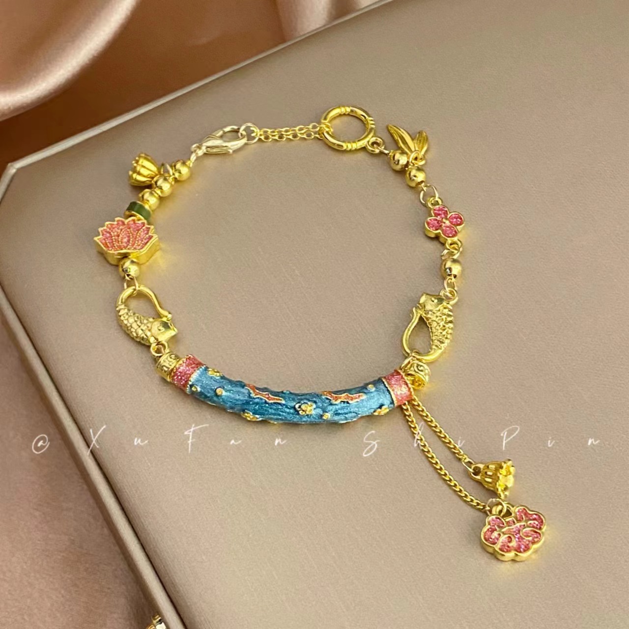 新しい曲管の半分の腕輪のブレスレットの女性は青い古法の金色の油を燃やします。