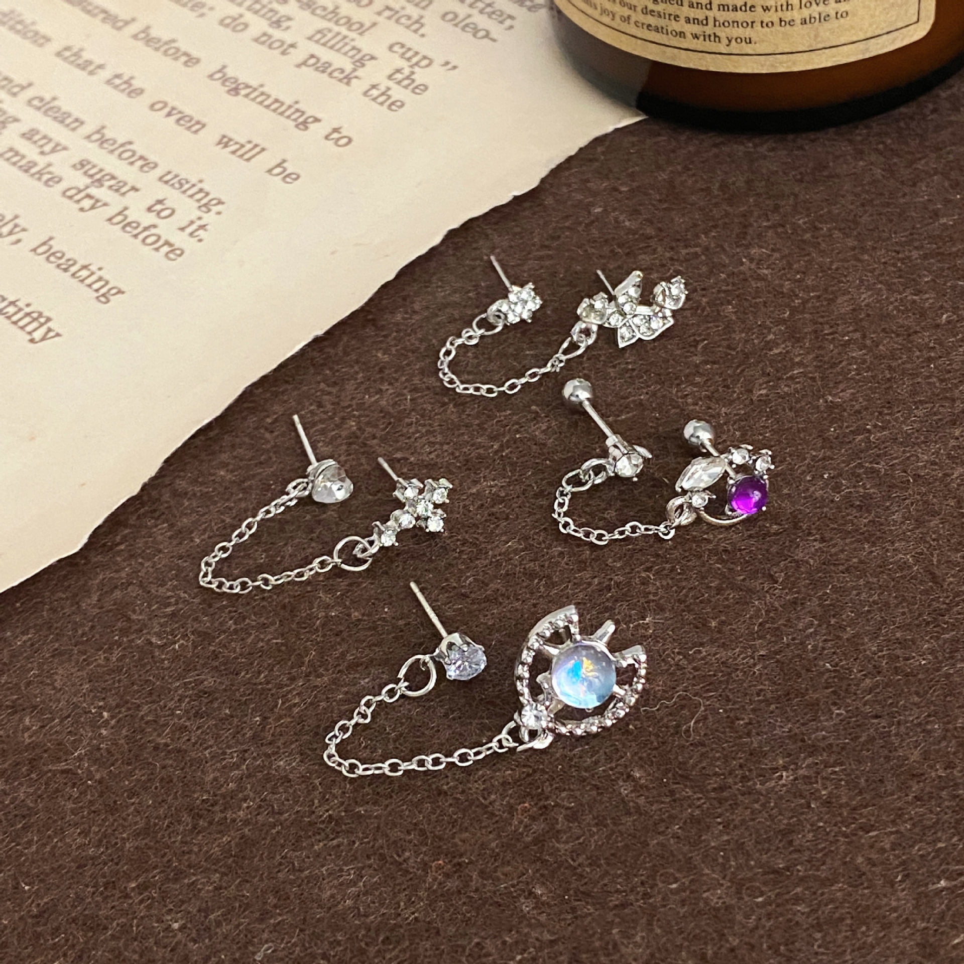 韓国の新型ダイヤモンド五芒星の蝶の花の耳の骨の釘の双耳の穴のピアスのイヤリングの大衆は耳飾りの女性を設計します。
