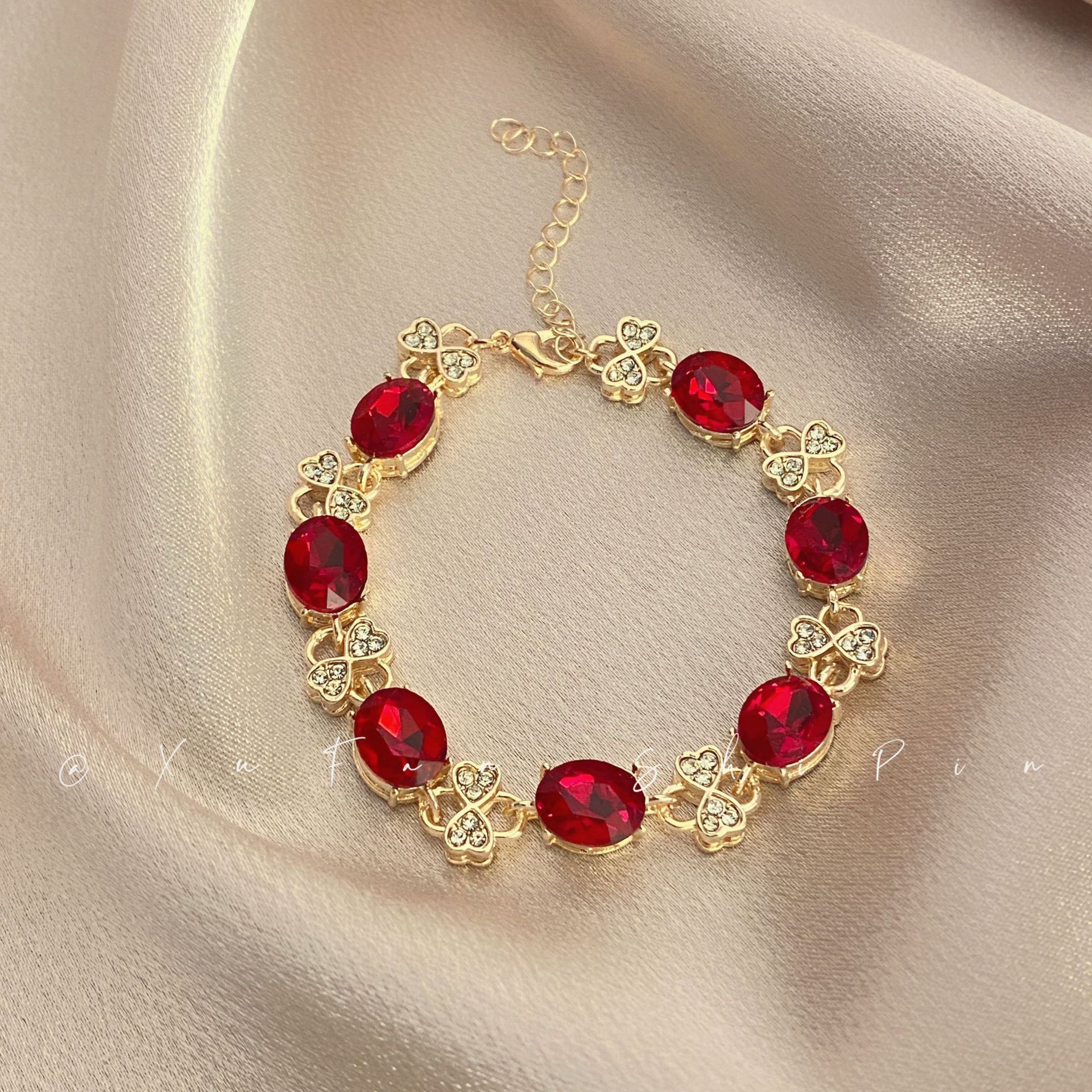 欧米風の赤いダイヤモンドのジルコンはブレスレットの女性の小さい大衆のデザイン感の気質を輝かせます。