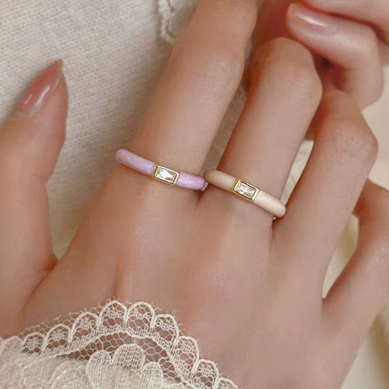 クリーム色エナメル素輪開口指輪女性大衆デザイン感気質ファッション精致風指輪アクセサリー