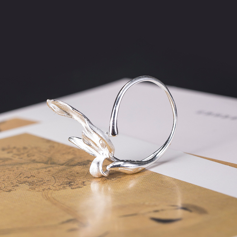 ファッションシンプルな国風大衆デザインの豪華な花の指輪女性ファッションの蘭の指輪の開口部のアクセサリーの卸売り