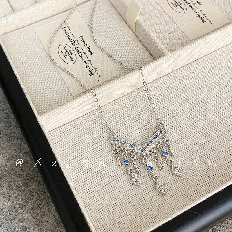 秋冬モデルの軽豪華風藍v字流蘇ネックレス小衆高級感ファッション気質百合女性鎖骨チェーンアクセサリー